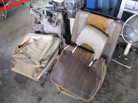 もうすぐ・・??もうすぐペイントが仕上がる’73BUSのシート張替えを開始いたしました!