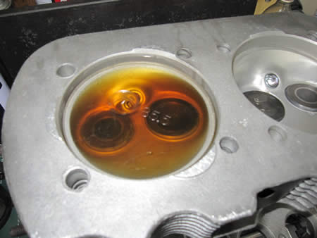 それにしても燃焼室が大きい・・・念のために燃焼室容積を計っておくことにしましょう。