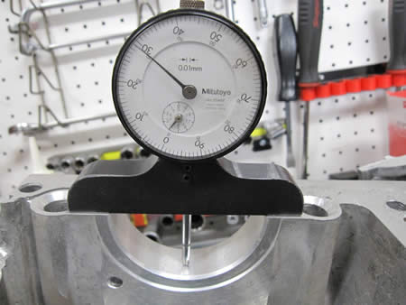 写真右はおNEWのアルミケースを計測しているところで、ダイヤルゲージの指数をよ〜く見ていただけると摩耗度合いがお判りいただけるはず。