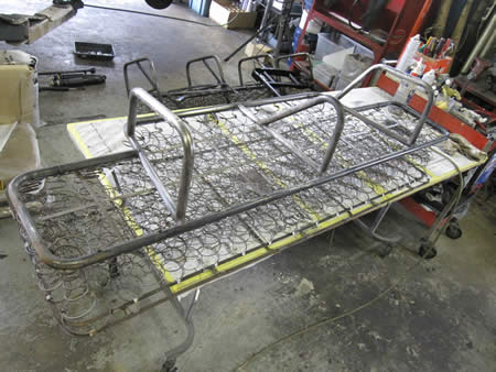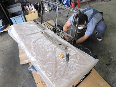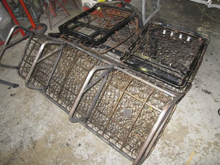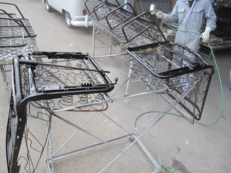 分解した各シートフレームを高圧洗浄機でキレイにしてからペイントの下準備を行いました。