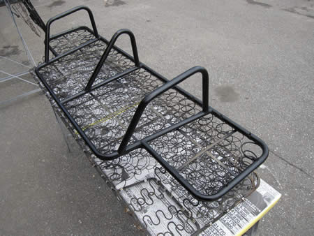 おNEWのシートパットとフレームの間に古いカバーを挟みます。