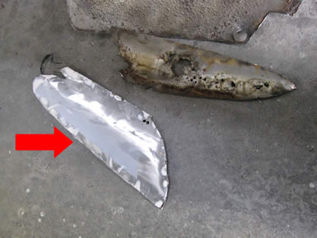 続いてフロントフェンダー裏の補強パネルを防錆鋼板で製作して張り替えました。