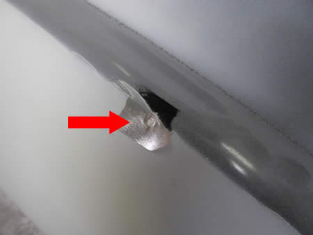 人為的に開けられた穴(矢印部)から水が浸入したのでしょう・・・。