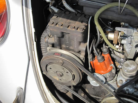 オリジナルのレシプロコンプレッサー・・・貴重といえば貴重ですが・・・軽用のロータリーに変更するとエンジンへの負担も少なくて済みますよ。
