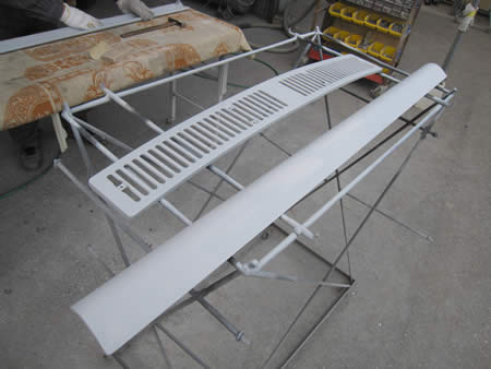 フロントマスクのベントカバーも剥離して下処理中です。