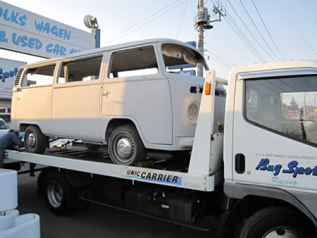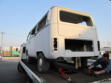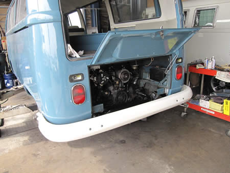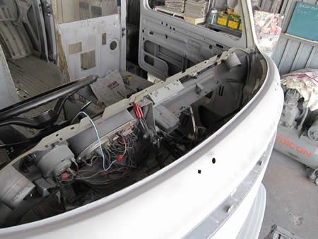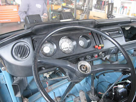 作業中の’74BUSは元々大変珍しいベンチシートモデルでした。