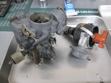 続いてキャブレターのO/H作業&デスビのO/H作業を行っています。