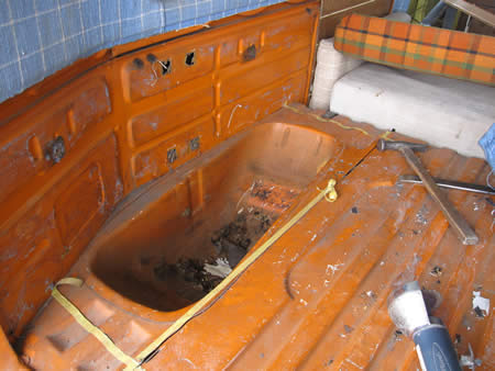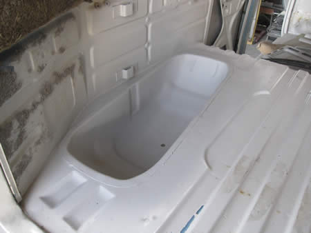 写真左はパーツカーより外した“バスタブ”でございます。