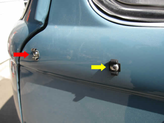赤矢印が純正、黄色矢印がリプロなんですが、純正はスチール製、リプロは樹脂製です。