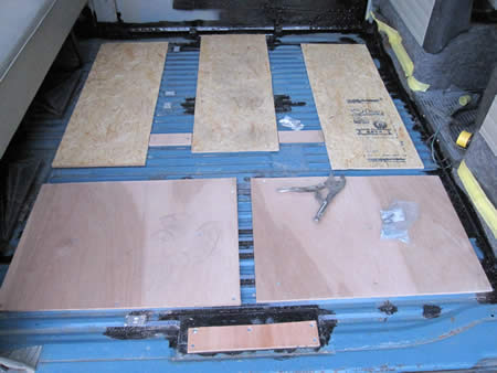 コンパネでは9mm厚の板が無く、ラワンでは高額・・・そこで見た目は悪いですがHCで売っている端材を使い敷き板にしました。