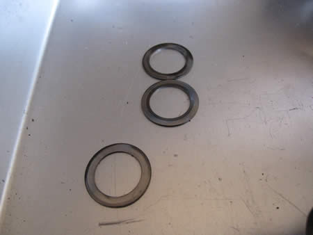 今回は特殊樹脂を切削して厚めスペーサーを作りシムの間に挟みました。