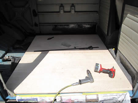 カーゴスペースをキャンパー風味にするため、コンパネを張る準備をしています。
