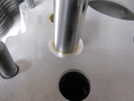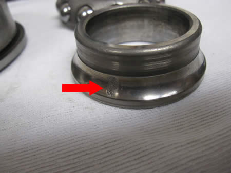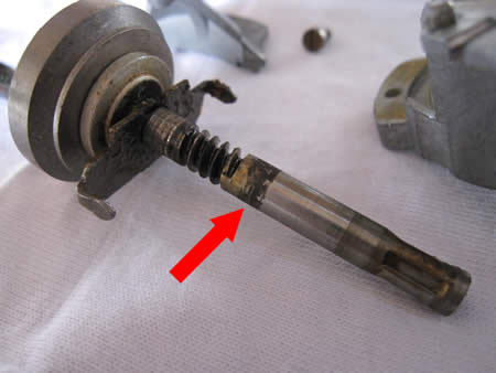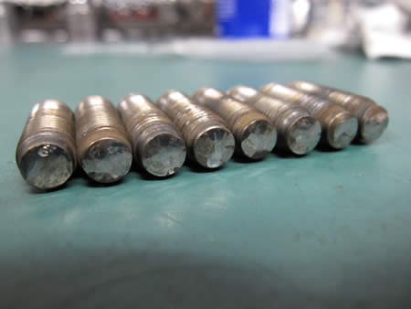 写真左が外したボルトですが、頭の部分(バルブに当たるところ)に片摩耗があります。