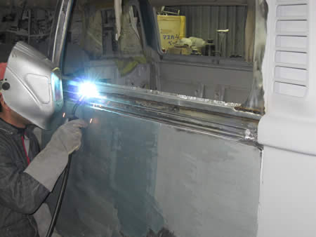 腐食している部分を切開して、製作したパネルを溶接していきます。