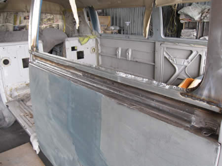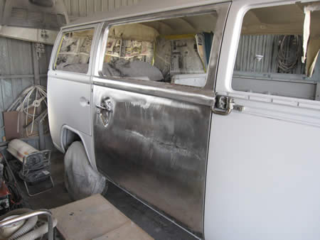 写真右は切開したスライドドア・・・。