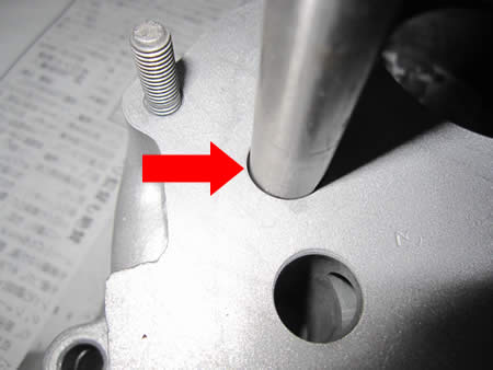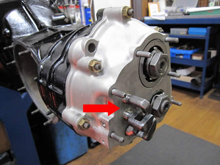 赤矢印の部分がブッシング加工した1〜4速のシフトロッドです。