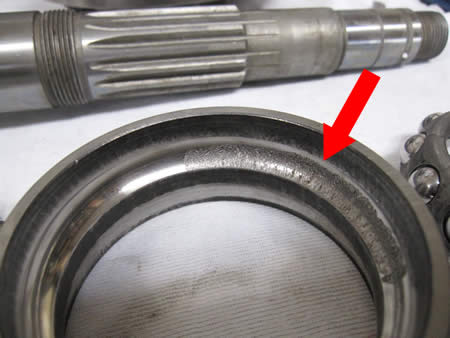 インナー&アウターレース共に虫食いの傷があり、これが走行中のゴォ〜〜音の正体です!