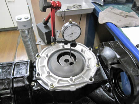 計測後に適正なシムを入れて、この時点でデフのバックラッシュ調整を行います。