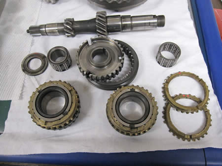 各シャフトにギア、スライダー、シンクロリングを組み付けていきます。