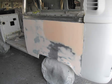 ペイントが仕上がった’68BUSに、外装パーツを組み付けはじめました!