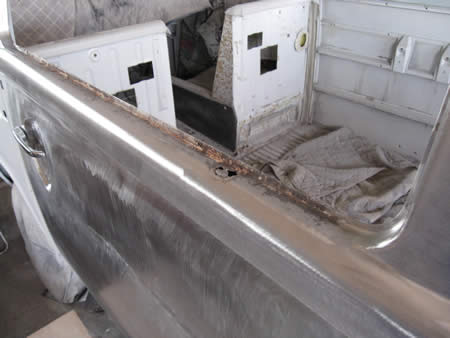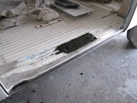 続いてカーゴドアを開けたステップの部分の剥離&板金作業を行いました。