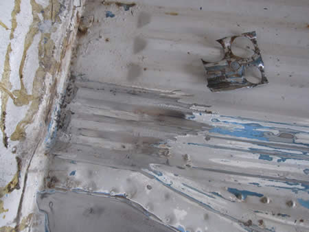 外側には上から鉄板を張って穴をふさいでいましたが、今回は切開して新しいパネルを製作する事にします!