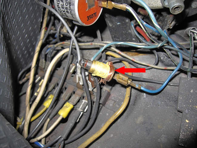 写真中央はメーター裏のウィンカーインジケーターランプのホルダーですが・・・裸線がグルグル巻きに・・・Oh〜デンジャラス〜〜。