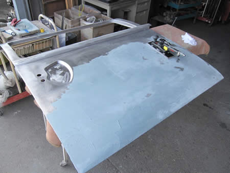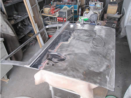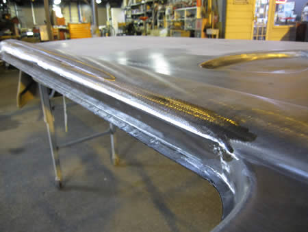 鉄板の面修正後にパテで整えていきます。