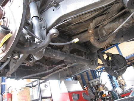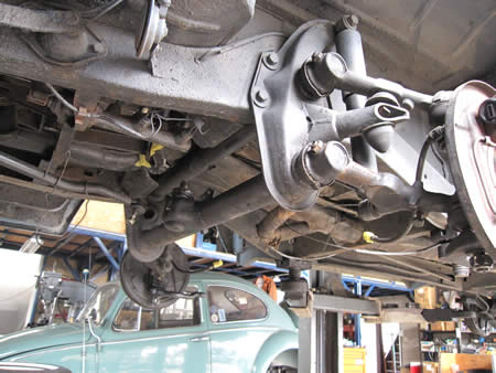 足廻りのモディファイのためアクスルビームを外しています。