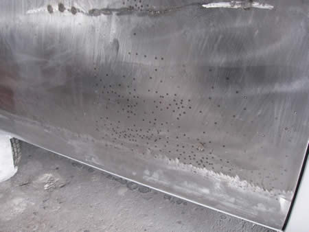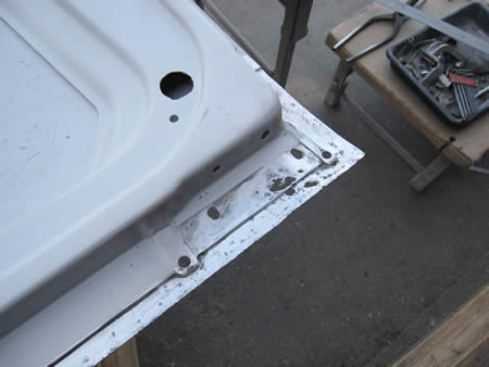 剥離して判明したスライドドアの穴、穴、穴・・・。