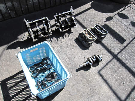 クランクケース、シリンダーヘッド、クランクシャフトなどなど、各部の洗浄が完了!