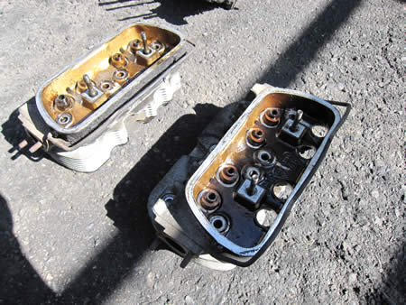 この部分のシリンダーは、分解時にヘッドに固着していました。ヘッドを外すときにケースからシリンダーが抜けてヘッドと一緒に外れてしまったのです。