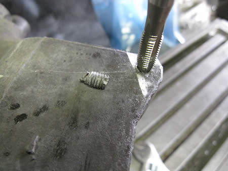 先ず折れてしまったボルトのセンターに下穴をあけます。少しずつ太いドリルに変更しながら穴を広げて、最後にヘリサート加工を行えば完璧です!