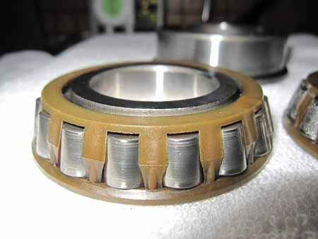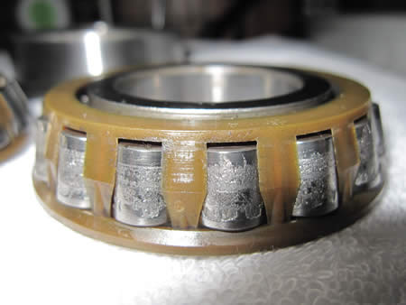 左のベアリングに比べて中央のベアリングのローラーはヒドイ状態です。
