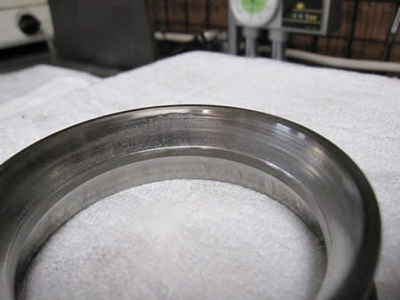 ブラスト処理後に発覚したシリンダー座面の腐食のため、フライカットをして座面の修正を行います。