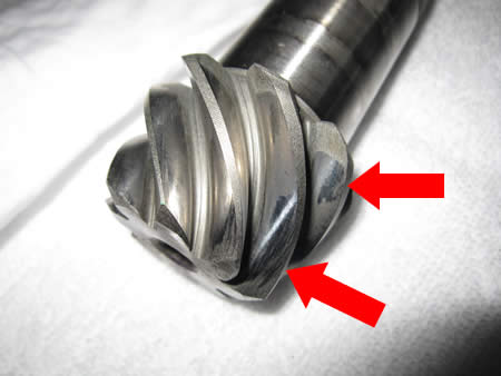 分解した時にも書きましたが、メインシャフトのベアリングに押されて光っていた部分、洗浄してみるるとご覧のように段付き摩耗がありました。