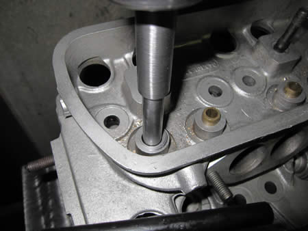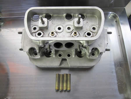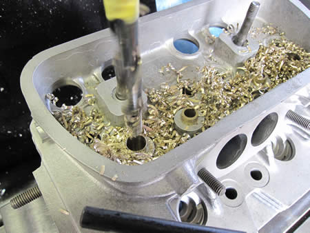 フライカット作業が完了したヘッドからEXバルブガイドを抜きます。