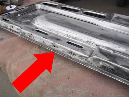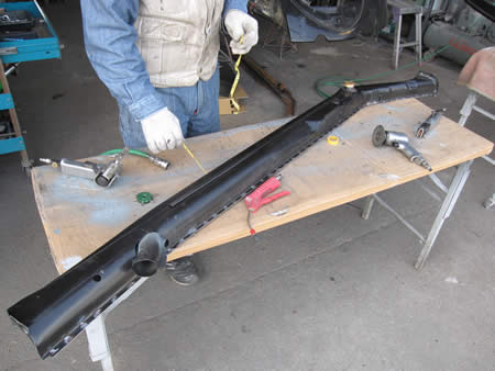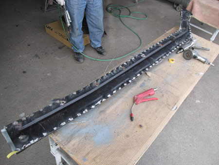 内側のヒーターパイプを取り付け、底板を溶接して元に戻ったサイドメンバー!