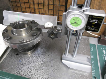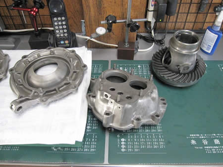 写真右はデフのバックラッシュ調整&S1、S2シムの選択を行っているところです。