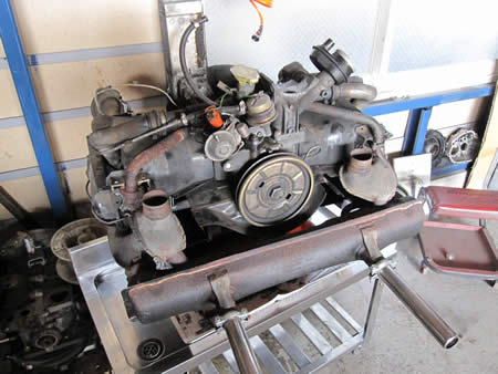 ファンハウジングを外しエンジンスタンドに掛け分解を進める…進め・・・Oh〜モ〜レツ♪