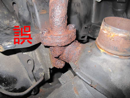 本来は写真右ののようなヘックスボルトを使用しているのですが、ナンバーボルト?みたいなものに変更されているため腐食がひどくなっています。