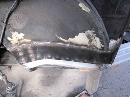 サイドメンバーを組み込んでAピラーパネル&インナーフェンダーを溶接!