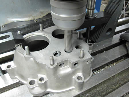 と言うことで、ミディエイトをフライス盤に固定してオーバーサイズの穴を開けてブッシュを打ち込んで修正します。
