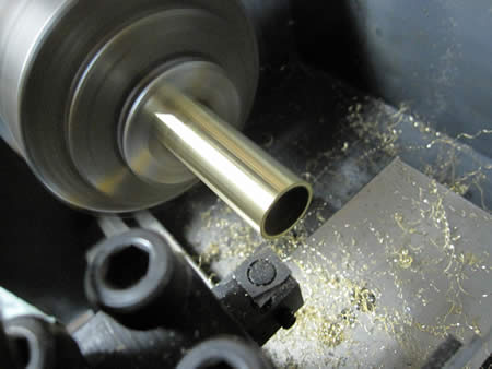 真鍮のパイプをデッカイ旋盤で粗削りをした後、マメ旋盤で仕上げます!