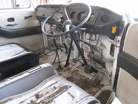 インパネ下に取り付けられていたクーラーユニット、メーター、スピーカーなどなどすべてリフレッシュするため取り外しました。