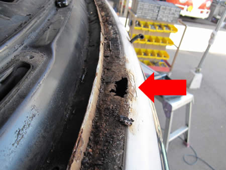 裏側から発生した錆び穴がビッシリと・・・修正するには補強パネルを製作して張り替えるかGoodUsedを探すか…悩みます・・・。