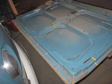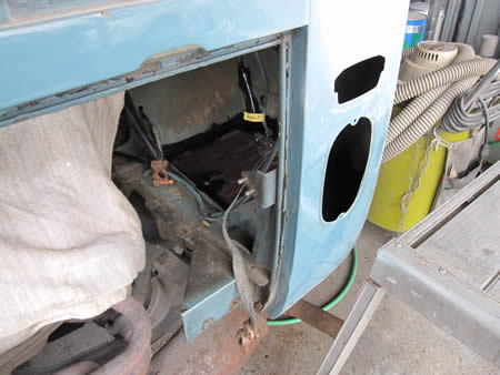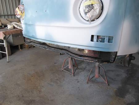 続いてフロントエプロンのアウターパネルを切開、内側を防錆処理しました。