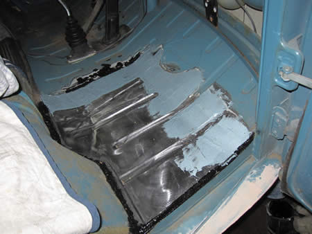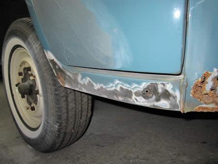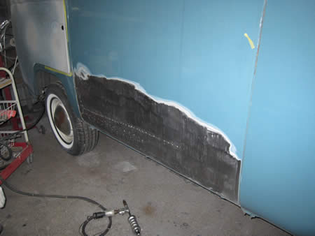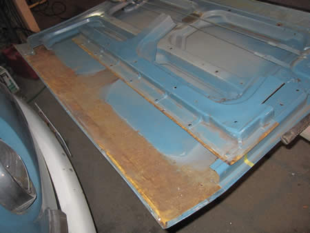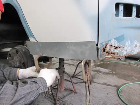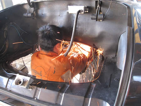 古いパネルを切除して新しいバッテリーパンを溶接します。ここのパネルは造りの良いリプロが出ていますので、比較的加工も無く作業が進められます!