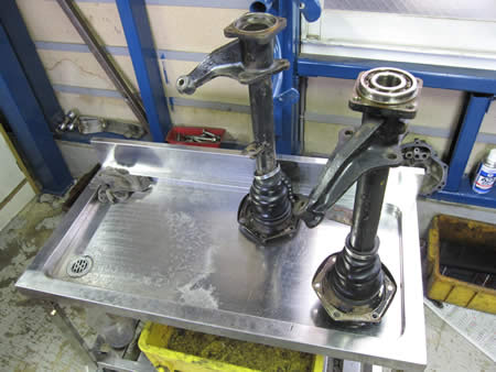 フロント廻りは分解済みでしたので、リア廻りの分解&エンジンを降ろし各部の点検から始めましょう。
