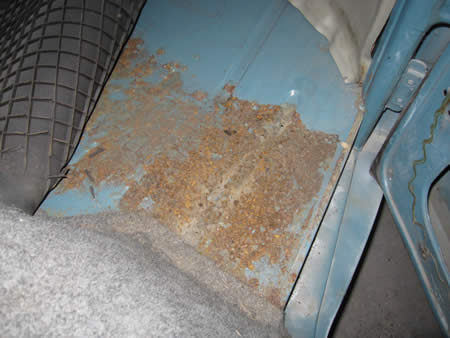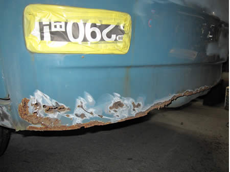 右リアホイールアーチ前、右ドッグレッグ下、フロントエプロン下側と、お約束の場所に傷みが発生しています。